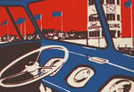 Designed by Steve Parsons from Sebright Creative using the 1950/60s offset printing method of overlapping two colours to create a third colour, the poster depicts a VW Barndoor deluxe on the track at Goodwood with the iconic pit control tower through the Splitscreen window.